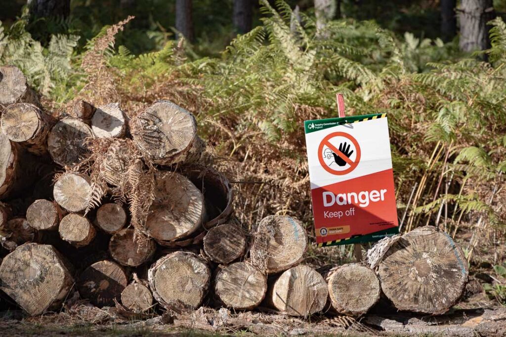 The walk continues, and I come to a decision. Left or right? A quick glance at my AllTrails app (whose maps I have downloaded for offline use) tells me I need to go right. At the junction, a pile of newly cut logs sits trail-side. Pine Trees, tall, thin, and after some online research, could be Scots or Corsican, loom over them, like parents mourning their children.